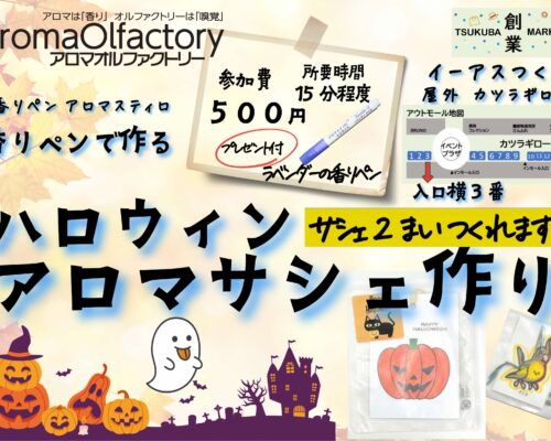 10月18,19日 (土日) 10時〜17時 イーアスつくば店 ハロウィン サシェ作り開催!